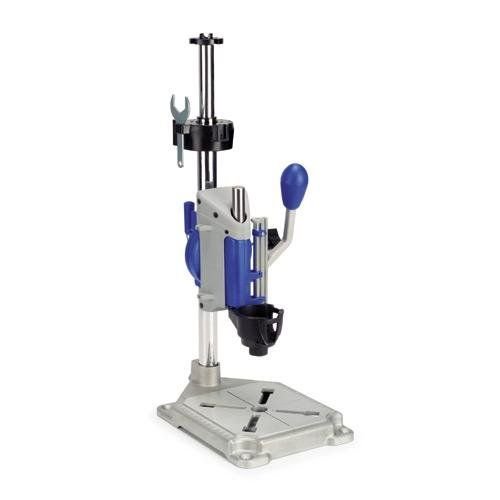 Это сверлильная стойка с максимальной глубиной сверления 5 см, держатель инструмента, позволяющий фиксировать его под разными углами для выполнения шлифования, полировки, заточки и т.д., а также встроенный телескопический штатив для фиксации инструмента для максимально комфортной работы с гибким валом. Освободите рабочее пространство благодаря навесному органайзеру. Подвеска позволяет хранить все необходимые насадки Dremel и другие мелкие детали в одном месте.